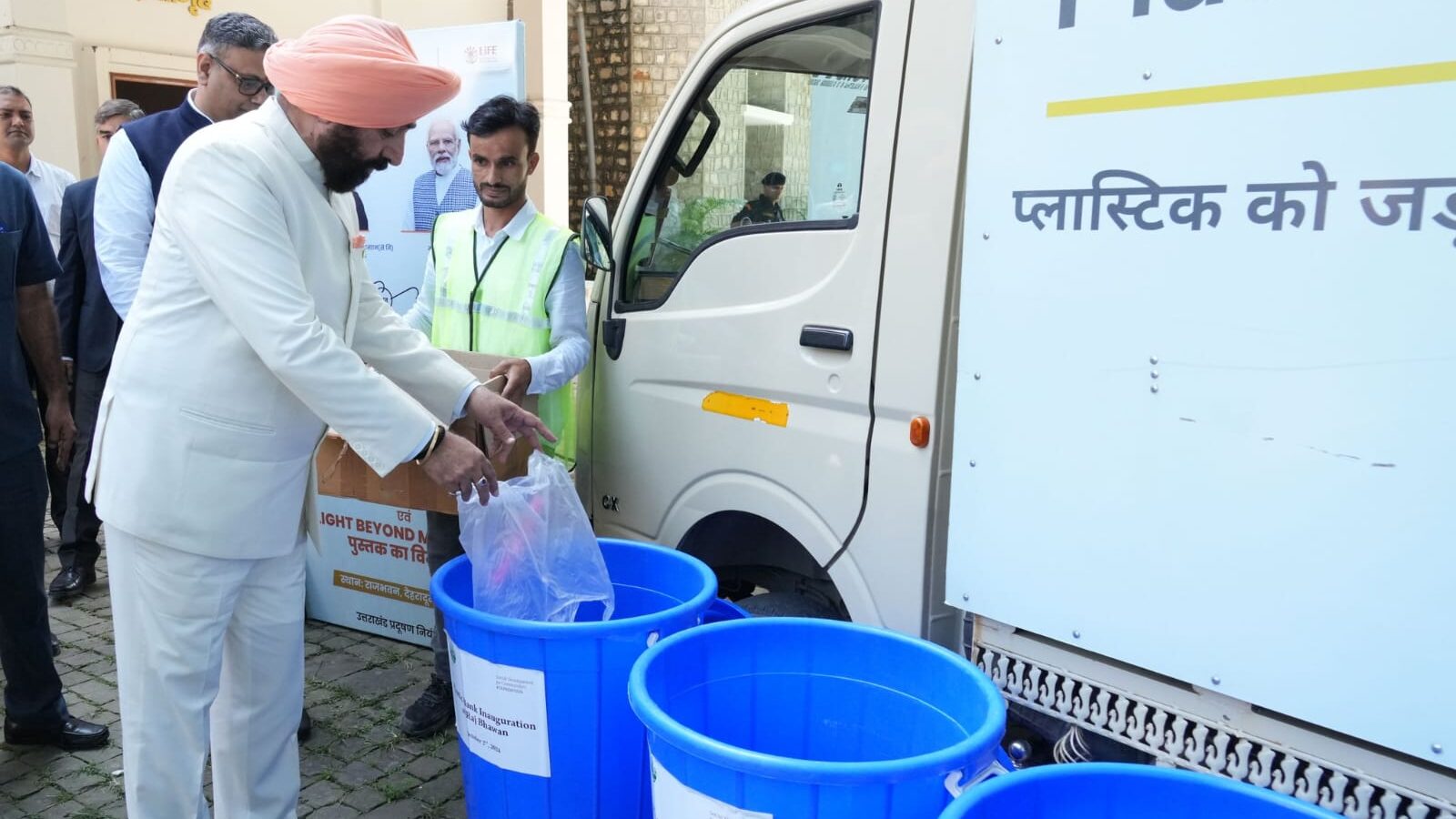 The Hon’ble Governor of Uttarakhand, Lieutenant General Gurmit Singh PVSM, UYSM, AVSM, VSM (Retired) inaugurated a Plastic Bank at the Raj Bhawan (Governor House) in Dehradun, on the occasion of Gandhi Jayanti and Swachh Bharat Diwas 2024.