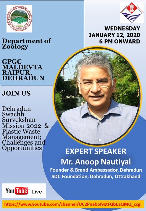 SDC Founder Anoop Nautiyal was invited as an expert speaker to discuss the Dehradun Swachh Survekshan 2022 at an online event organised by the Government Post Graduate College, Maldevta, Dehradun.